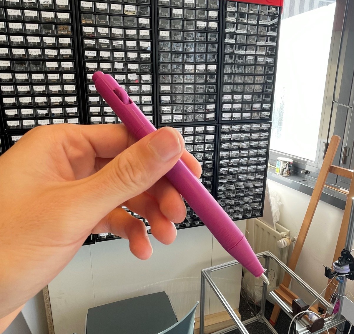 - The main body is designed to hold the ink cartridge. I wanted it to be comfortable to hold, hence the relatively classic design.